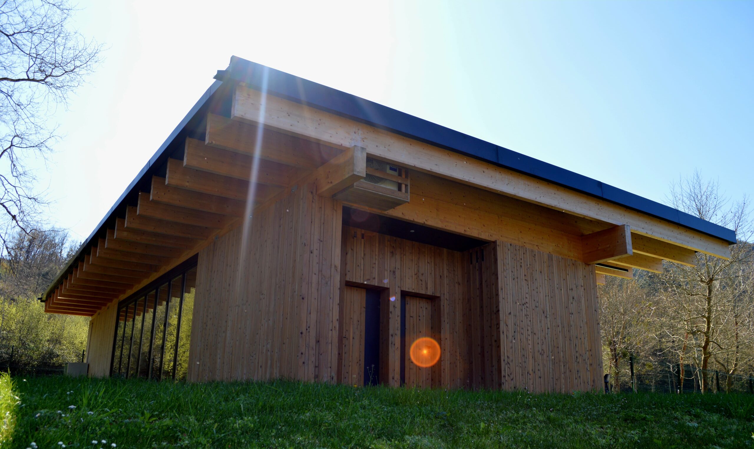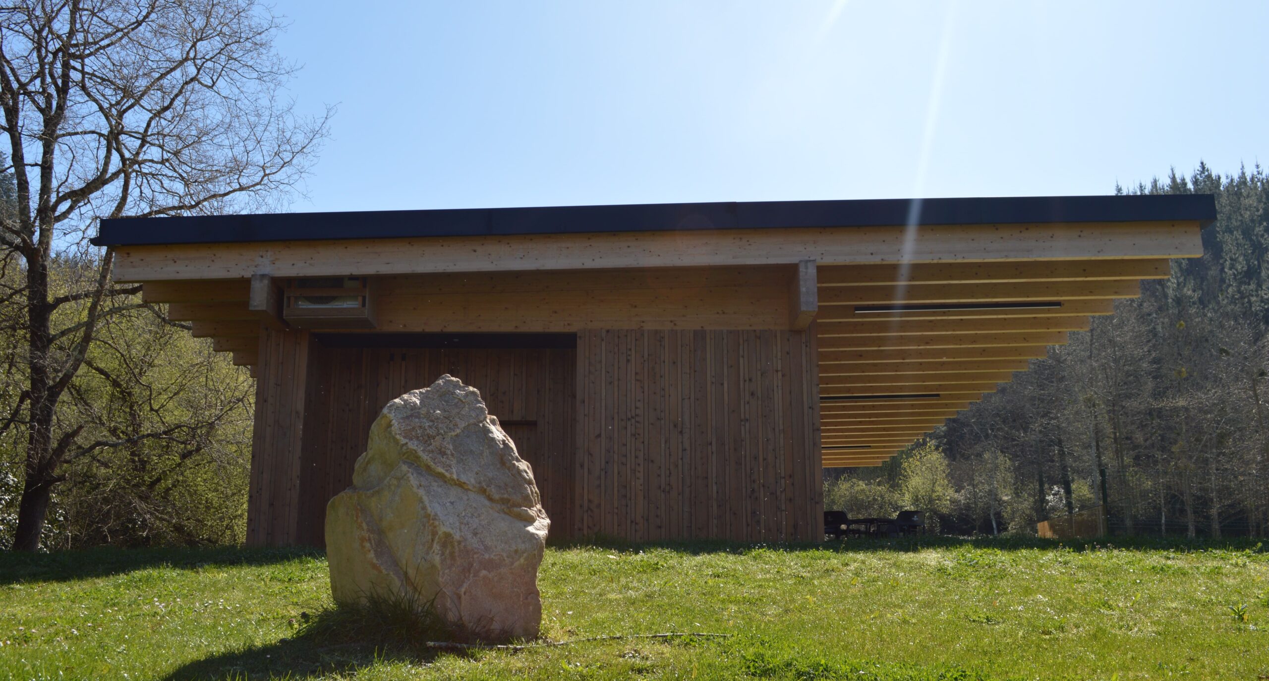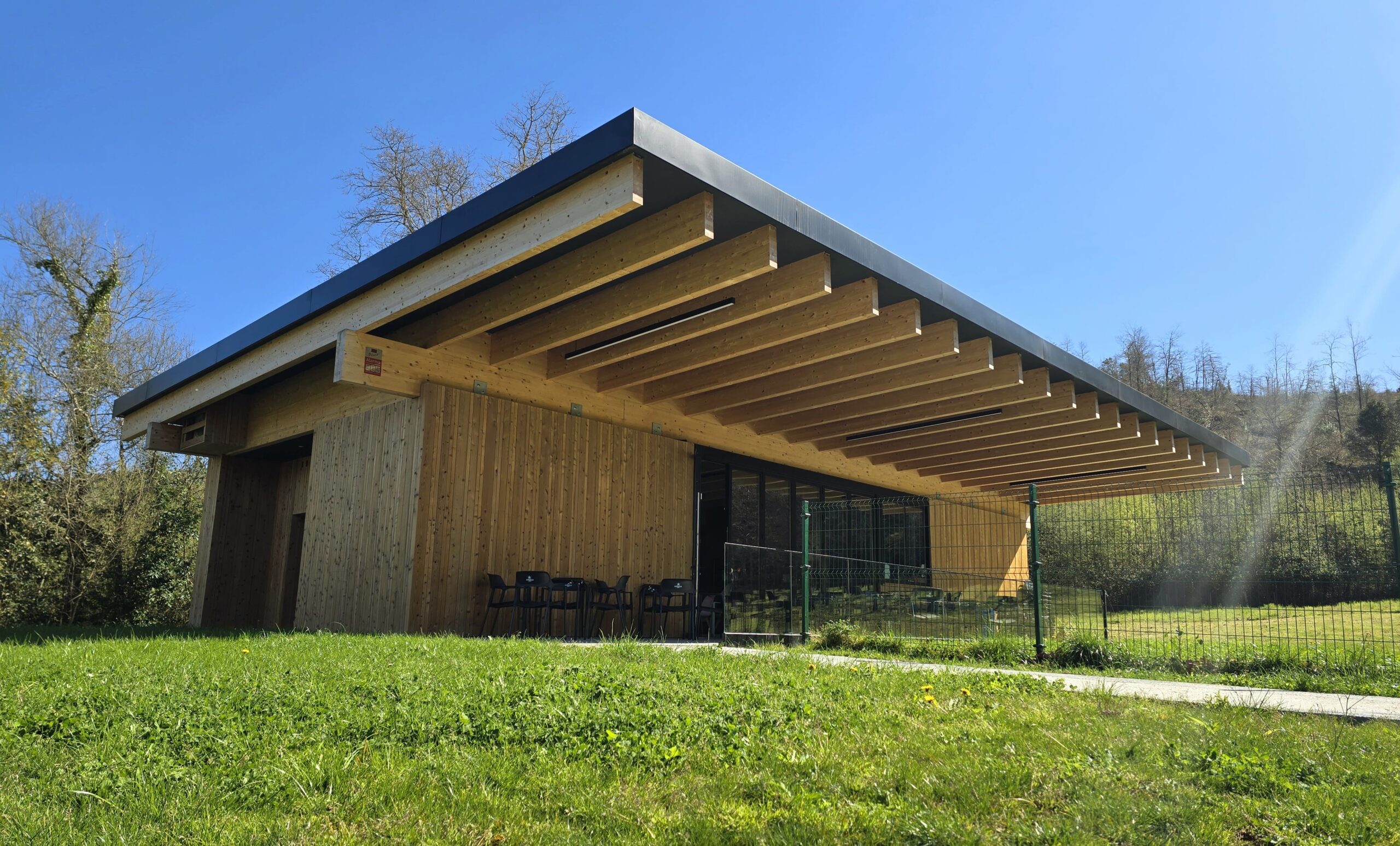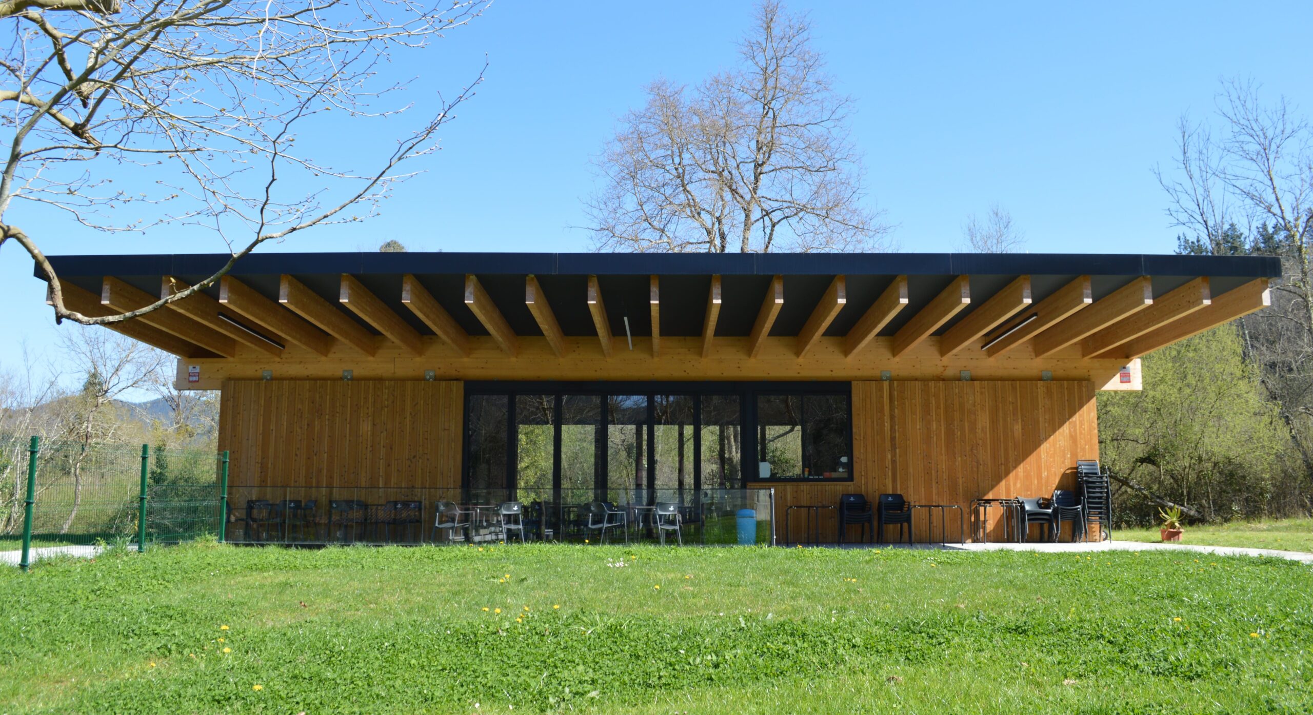 El Bar-Cafetería de las piscinas municipales de Okondo se resuelve como una pieza compacta de madera vista que se abre a la naturaleza mediante una gran terraza y una fachada que permite su apertura completa. Los vuelos de cubierta protegen del sol y la lluvia, permitiendo ampliar la sala al exterior y usar el espacio de forma dinámica durante la temporada de verano. La claridad estructural de la madera refuerza la integración en el entorno natural. El resultado es un edificio cálido, eficiente y muy funcional, donde la precisión en encuentros y remates garantiza durabilidad y bajo mantenimiento.